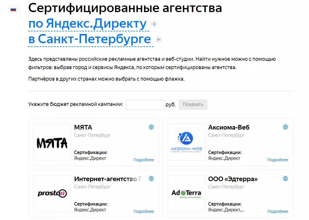 В разделе сертифицированных агентств будет карточка вашего агентства. Яндекс рекомендует эти агентства рынку и признает их важными игроками в сфере контекстной рекламы.