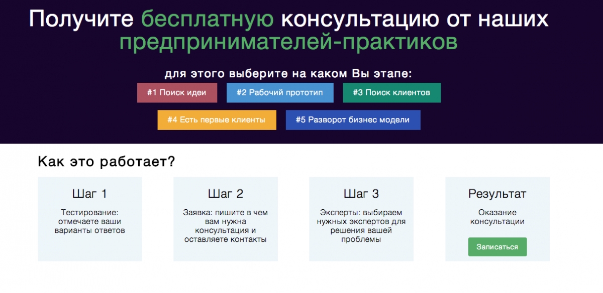 Перенимай опыт: возможность оставить заявку на консультацию от предпринимателей-практиков.