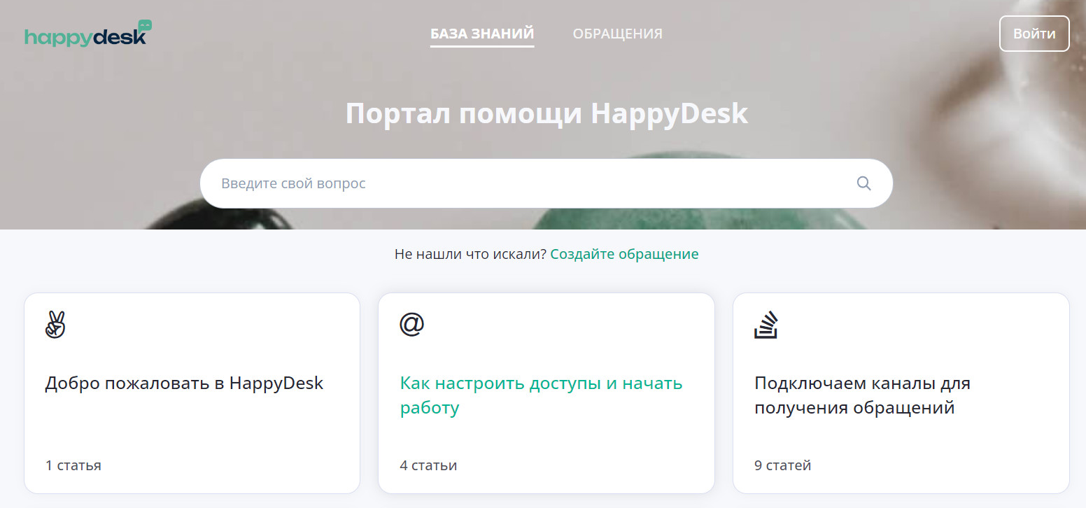 Helpdesk-система для автоматизации клиентской поддержки, на основе которой можно создавать в том числе и базы знаний. Статьи в созданной базе знаний могут быть доступными для всех без исключения и с ограниченным доступом. Для того, чтобы открыть статьи второго типа, придется авторизоваться.