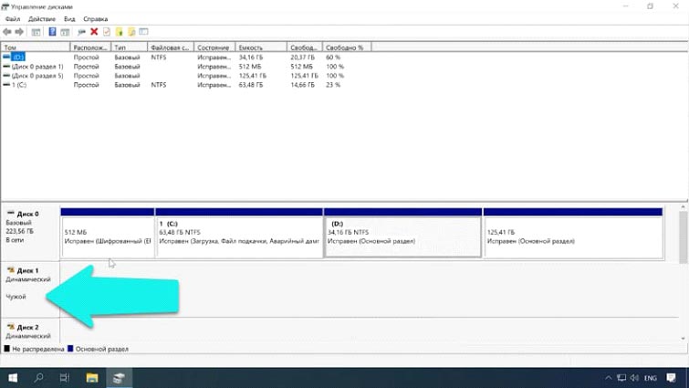 - При поломке одного или нескольких накопителей в RAID, ОС не сможет прочитать все характеристики и настройки массива, поэтому все оставшиеся диски могут получить статус «чужой динамический».