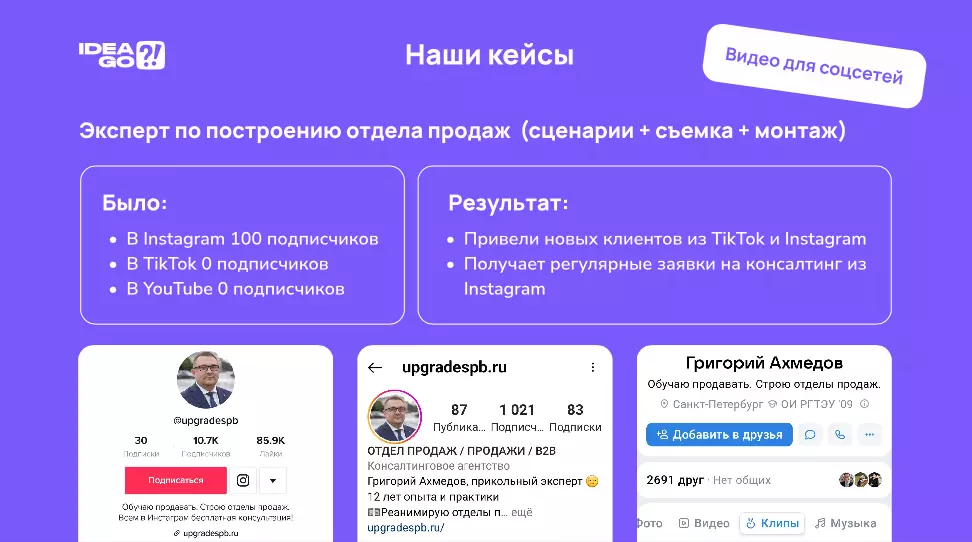 Хотите больше кейсов? Тогда переходите в наш Инстаграм, мы регулярно рассказываем о каждом клиенте: https://www.instagram.com/_idea_go/.