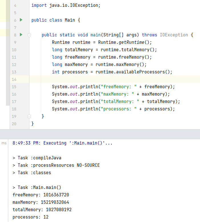 Класс Runtime имеет статический метод получения имплементации getRuntime(). В нём интерес представляют такие методы как: