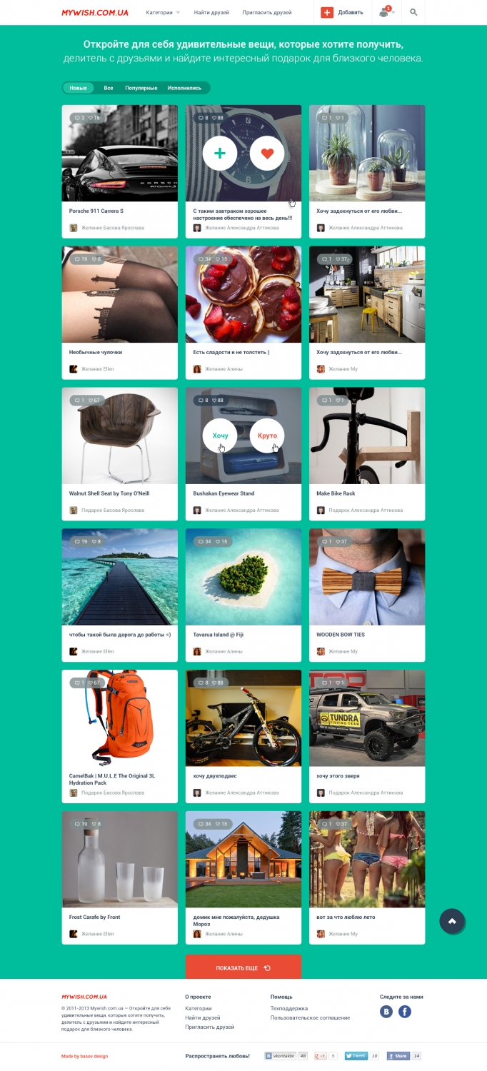 Желания сортируются по категориям, хотим добавить еще теги. Желания можно добавлять просто картинку и текст, можно и брать продукт с какого-то магазина, после на сайте будет указывать где можно будет купить это желание, если кто-то решится подарить.