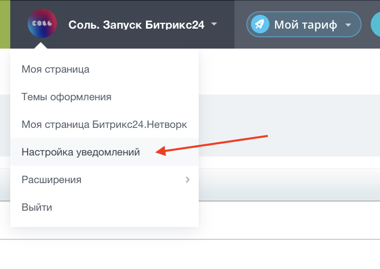 Каждый сотрудник сам управляет теми уведомлениями, которые система ему отправляет. Чтобы посмотреть, какие уведомления и как у вас включены, нажмите на свой профиль, далее — Настройка уведомлений.