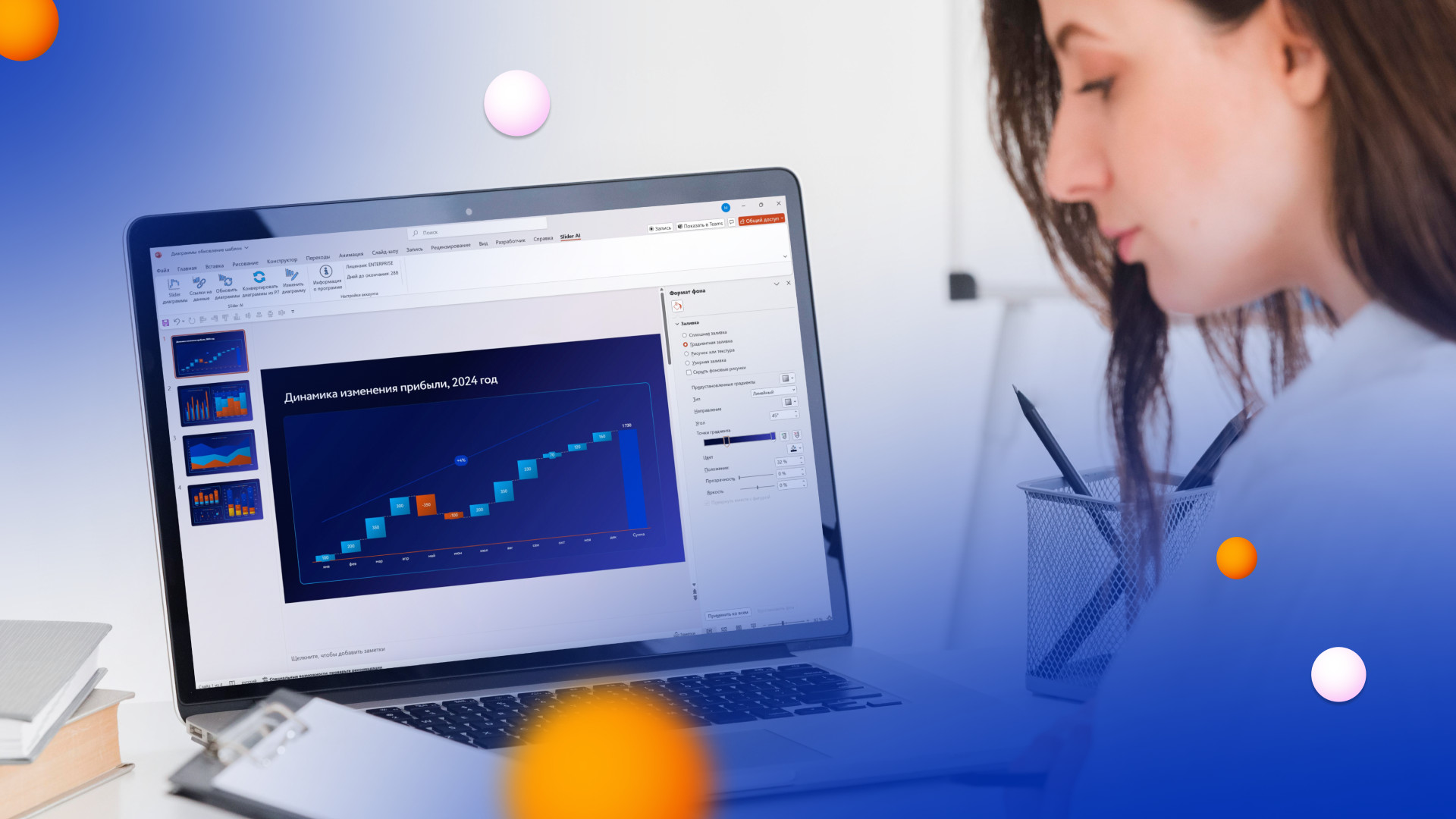 По статистике офисные сотрудники тратят до 2,5 месяцев рабочего времени в год только на подготовку и создание отчетных презентаций. Однако инструменты автоматизации, такие как Slider Диаграммы, могут сократить это время как минимум на 70%.