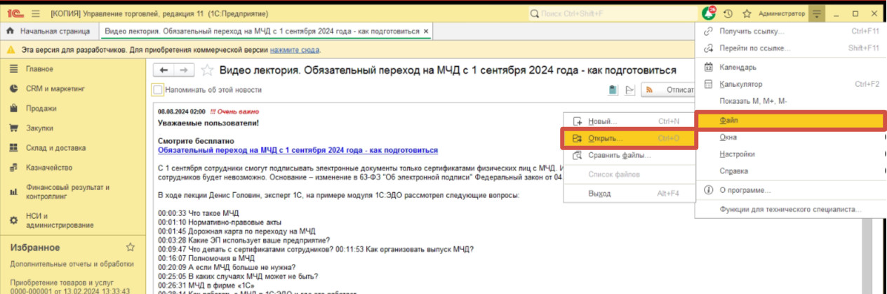 Сначала заходим в меню «Сервис и настройки», выбираем вкладку Файл и нажимаем кнопку Открыть: