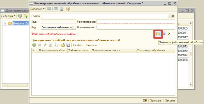 дополнительных внешних обработках появилась добавленная нами обработка с