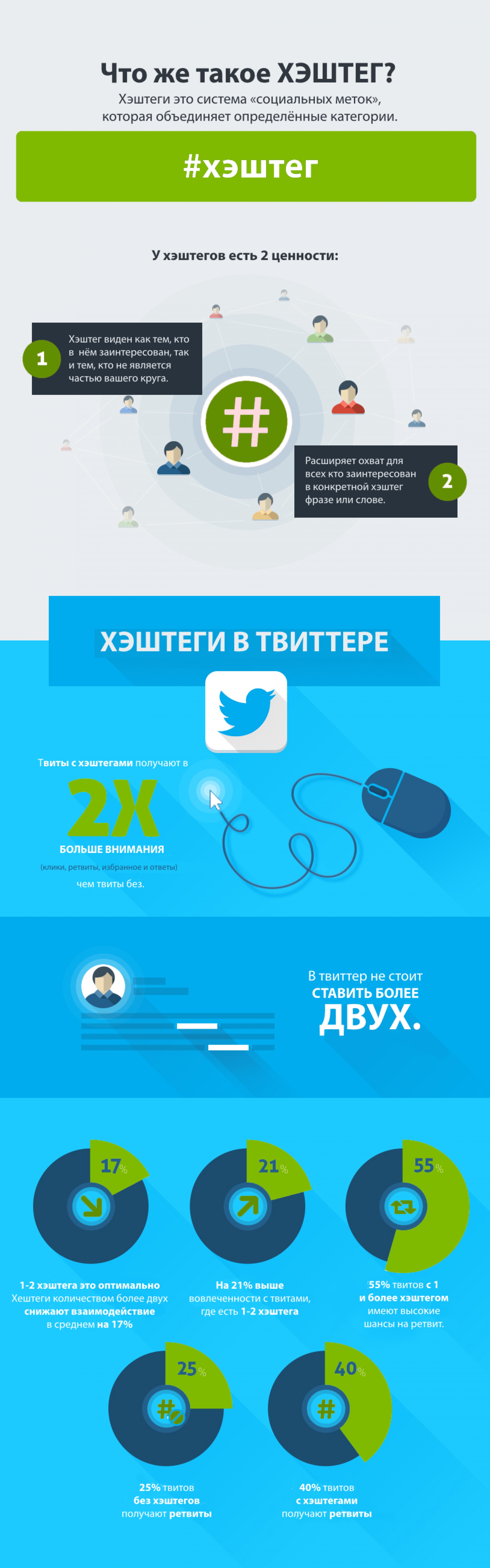 Мы собрали все инсайты в единую инфографику. И как оказалось, в Twitter не стоит ставить больше двух хэштегов, а в Instagram и десяток — полезет. С Facebook и Google+ - здесь сложнее.