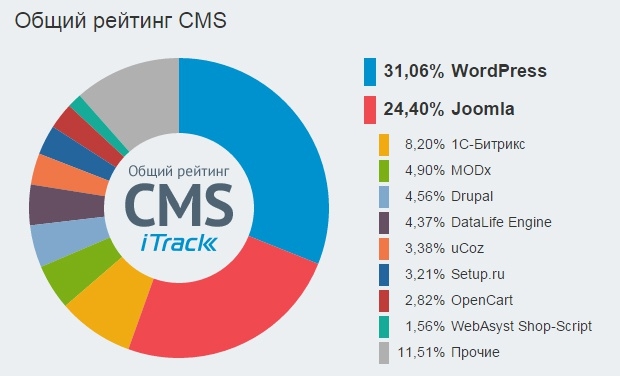 Больше половины сайтов (а именно немногим более 55%) сделаны на основе наиболее популярных бесплатных CMS. Это обосновано элементарной логикой: стоит ли переплачивать, если необходимый набор инструментов можно получить и бесплатно? Только в случае недостатка функционала для реализации сложных идей появляется необходимость прибегнуть к платным CMS, да и это далеко не стандартная ситуация.