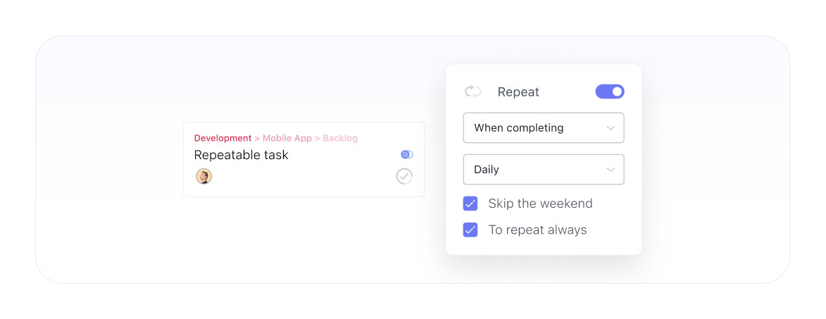 У всех есть регулярные задачи: сделать еженедельный отчёт по работе, заплатить за квартиру и т. д. Раньше в WEEEK приходилось каждый раз создавать такие задачи заново. Но это в прошлом — сейчас для этого есть повторяющиеся задачи.