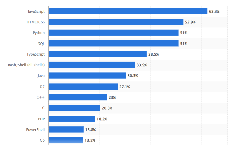 Python в рейтинге самых популярных языков программирования. Источник: Statista