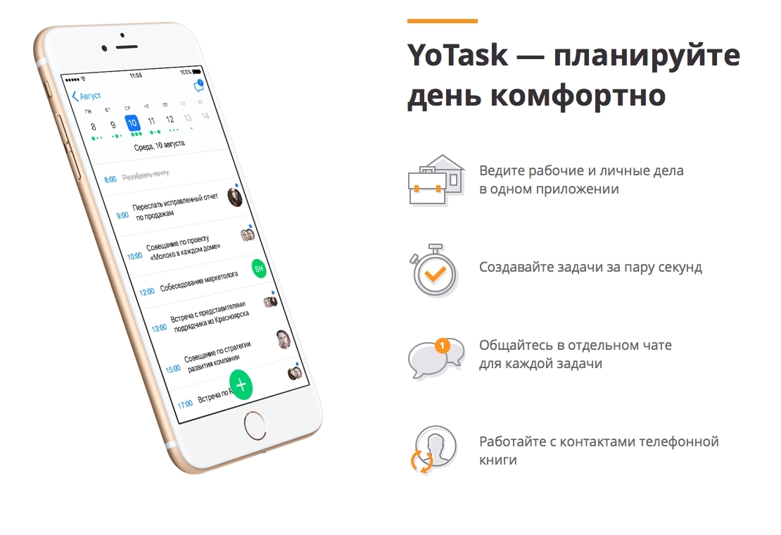 YoTask - это task-messenger, удобное решение для тех, кому кому важно управлять своими делами, сохраняя мобильность и простоту общения.