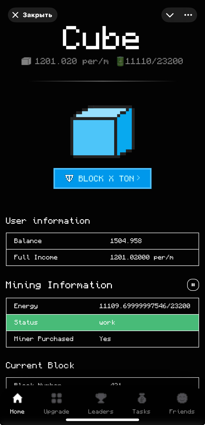 Cube - telegram. Майнинг в приложении. Когда листинг $CUBE ?
